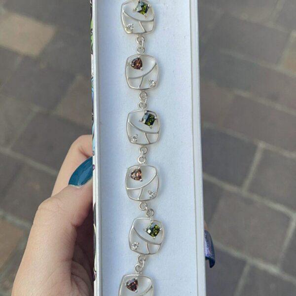Srebrna bransoletka kolorowe cyrkonie