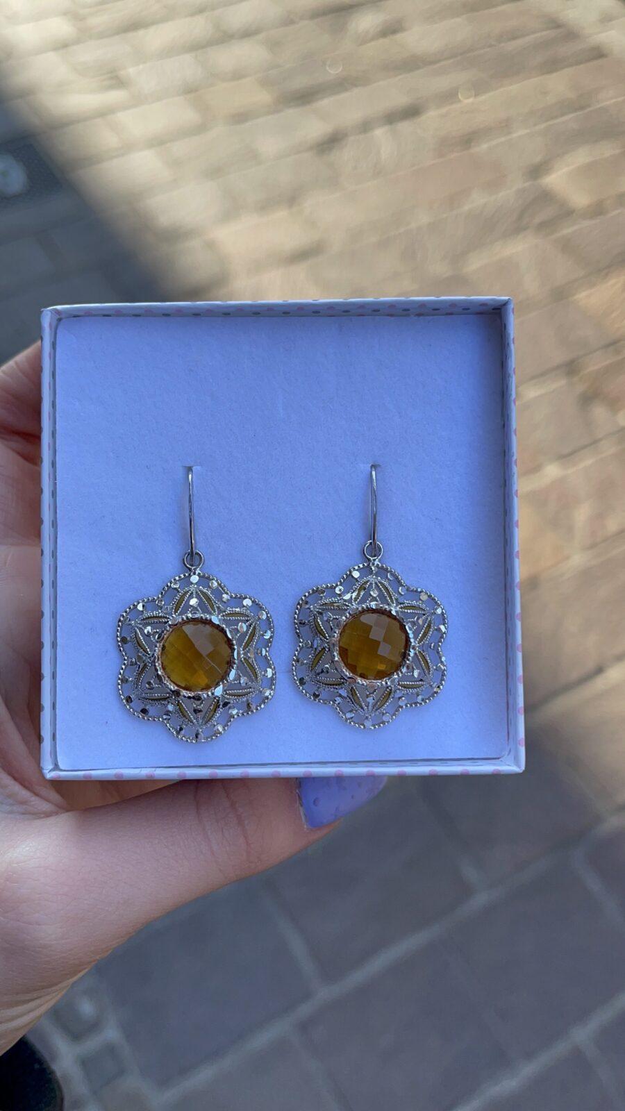 Srebrne (próba 925) kolczyki o wymiarach 4,5 x 3 cm z imitacją cytrynu.