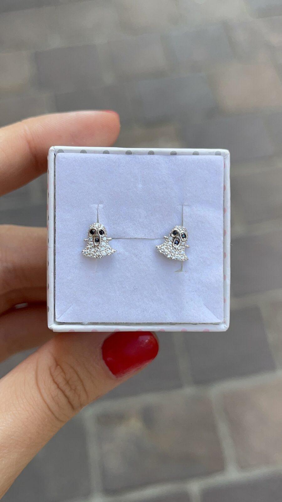 Srebrne kolczyki wkrętki duchy, które super sprawdzą się na prezent dla każdej dziewczynki.