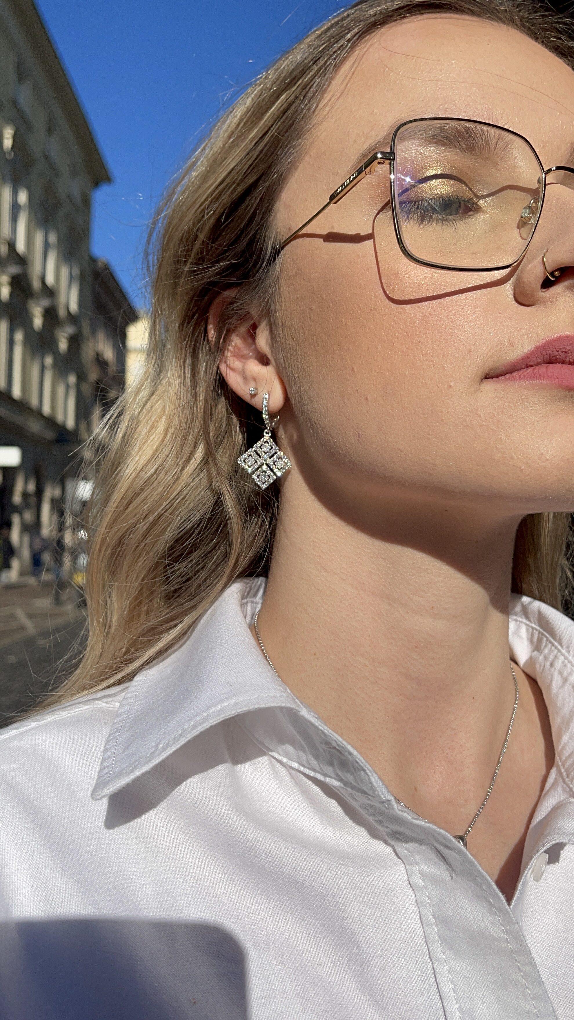 Efektowny, srebrny komplet idealnie pasujący do wielkich wydarzeń, eleganckich stylizacji. Z każdego uczynią gwiazdę!