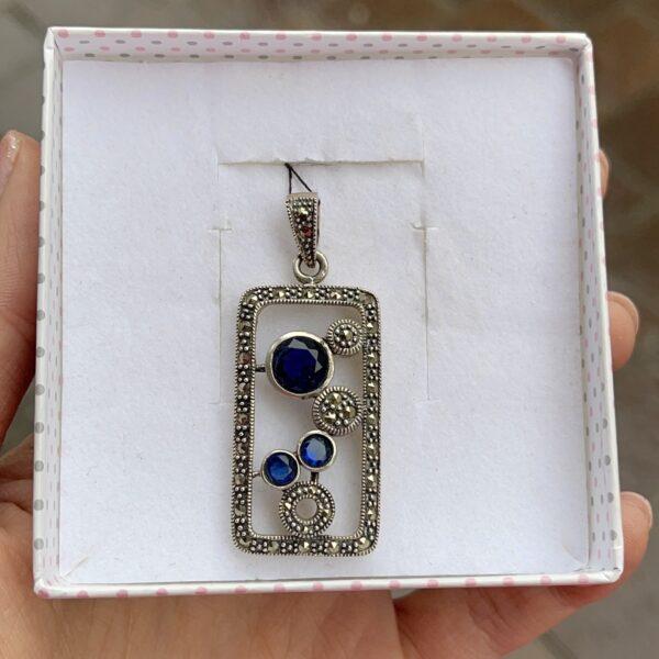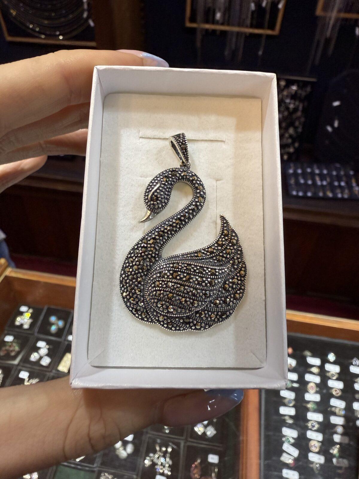 Srebrny (próba 925) wisior łabędź o długości 5,5 cm. z markazytami